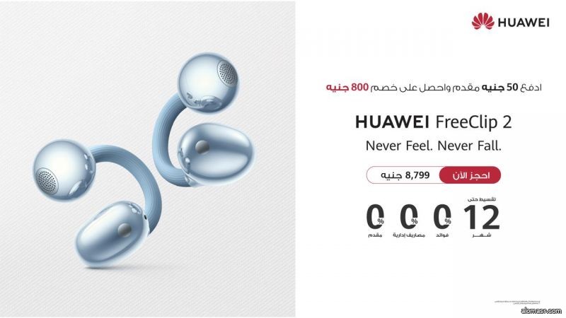 احجز HUAWEI FreeClip 2 الآن بمقدم 50 جنيه فقط، واستمتع بخصم يصل إلى 800 جنيه، مع خطط تقسيط تصل إلى 12 شهرًا. يمكن حجز HUAWEI FreeClip 2 عبر المنصة الرسمية لهواوي أو من خلال متاجر HUAWEI Experience Store.